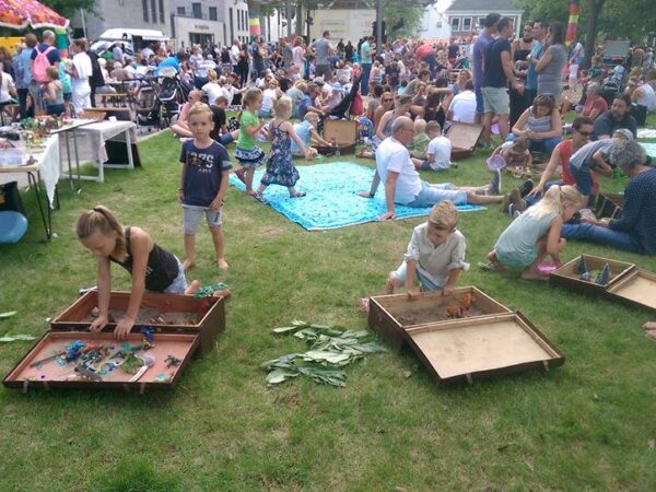 Kinderen bouwen hun eigen wereldje in een oude koffer, op hun eigen manier, in hun eigen tempo. Met zand, figuurtjes, steentjes, houtjes en alles wat hun fantasie nodig heeft.